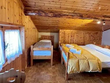 pokój z łóżkiem podwójnym, łóżkiem piętrowym i TV łazienka z prysznicem, WC i suszarką do włosów częściowo balkon lub taras Wi-Fi Zakwaterowanie znajduje się na poddaszu i ma częściowo ograniczające skośne sufityMiejscowość - Ginepro