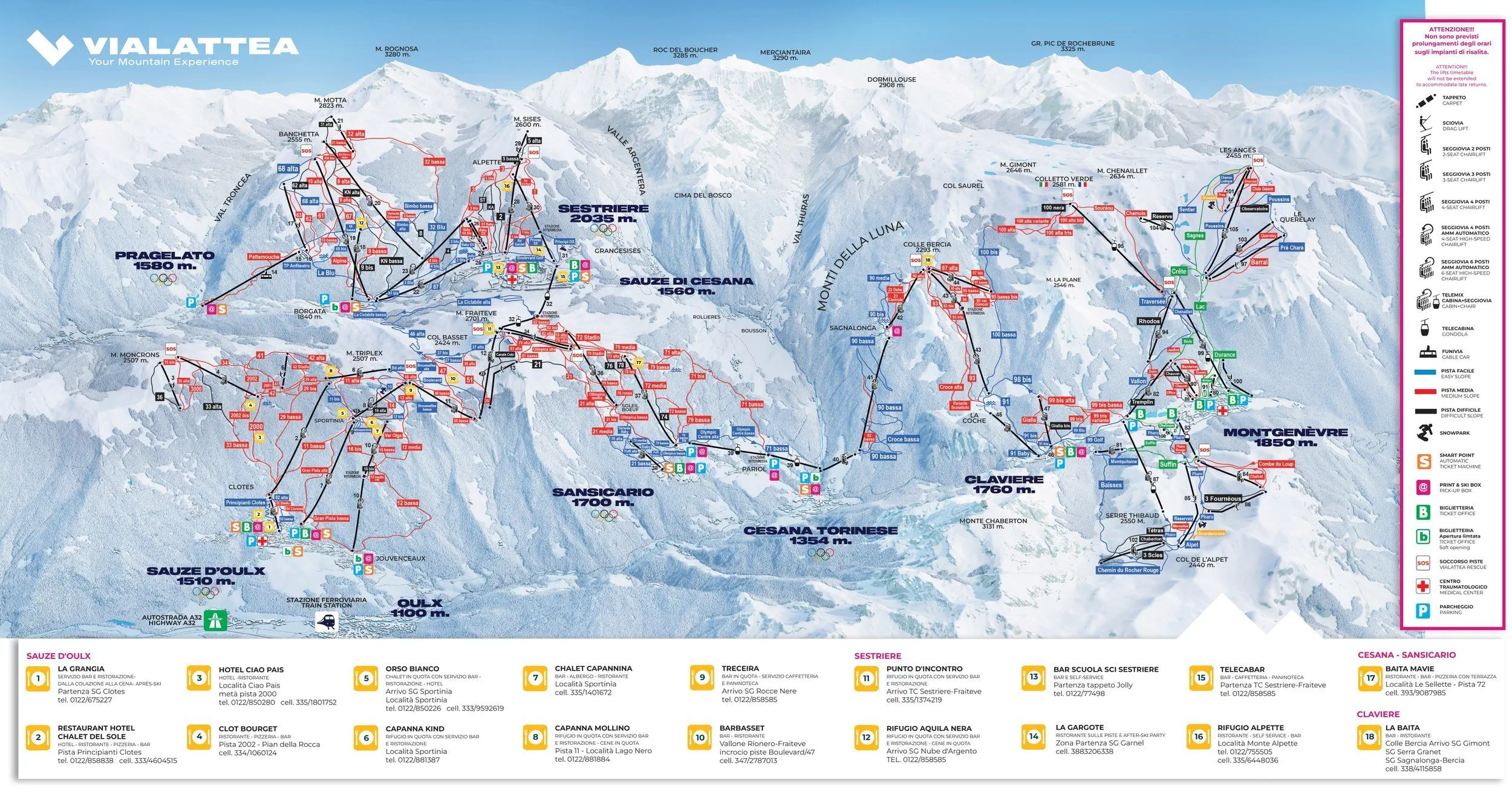 Kolej: SestrierePrzelot: Turyn (ok. 120 km), Grenoble (ok. 190 km)Karnet narciarski - dodatkowe informacje. - Hermitage
