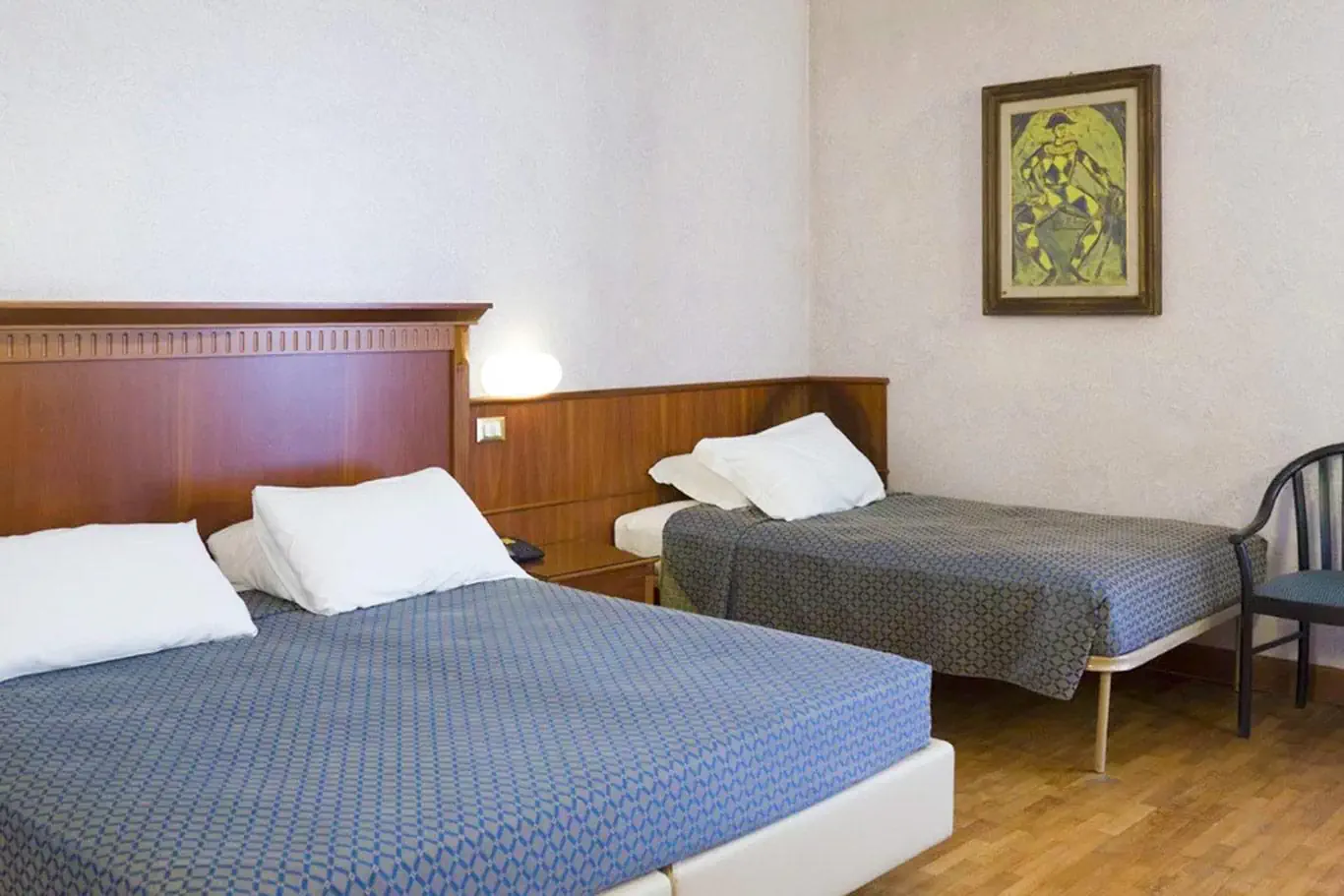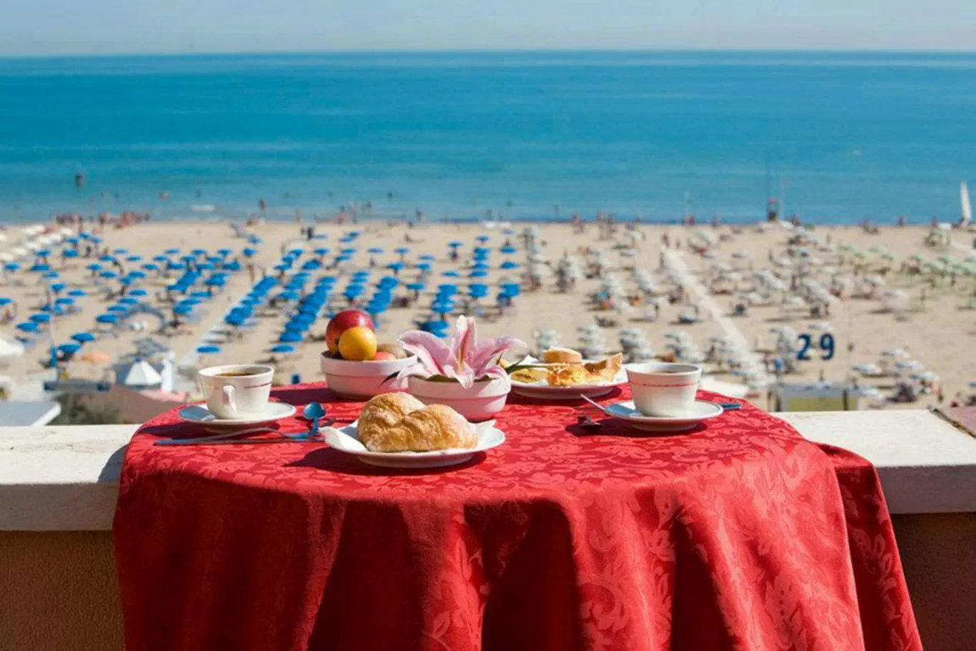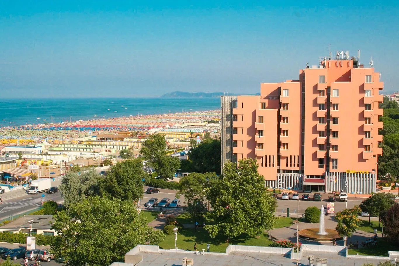 Hotel ten został wzniesiony w 1972 roku. Obiekt oferuje łącznie 65 pokoi. W obiekcie do dyspozycji gości jest czynna 24 godziny na dobę recepcja oraz 24-godzinny check-out-service. Poszczególne piętra osiągalne są za pomocą windy bądź też schodami. Na miejscu znajduje się szatnia, przechowalnia bagażu, sejf i bankomat. Wi-Fi (bezpłatnie) umożliwia dostęp do internetu również w pomieszczeniach ogólnodostępnych. Pomocą w rezerwacji wycieczek służy Państwu nasz tour-desk. Na urozmaiconą ofertę gastronomiczną składają się sala śniadaniowa i bar. Dostępna jest baza handlowa w postaci sklepów. W obrębie obiektu znajduje się ogród. Do Państwa dyspozycji jest również sala telewizyjna i biblioteka. Auto pozostawić można w garażu (odpłatnie) oraz na parkingu. Poza tym goście skorzystać mogą z przechowalni rowerów. Do pozostałych świadczonych usług należą wielojęzyczny personel, 24-godzinna ochrona, babysitting, wypożyczalnia samochodów, opieka medyczna, transfer hotelowy, serwis pokojowy i pralnia. Istnieje możliwość skorzystania z transportu wahadłowego. Podróżnych preferujących zapoznanie się z okolicą w sposób aktywny ucieszy z pewnością możliwość wypożyczenia rowerów. Istnieje możliwość skorzystania z pomieszczeń konferencyjnych wraz z faksem i projektorem.Pokoje - Bellevue (Rimini)