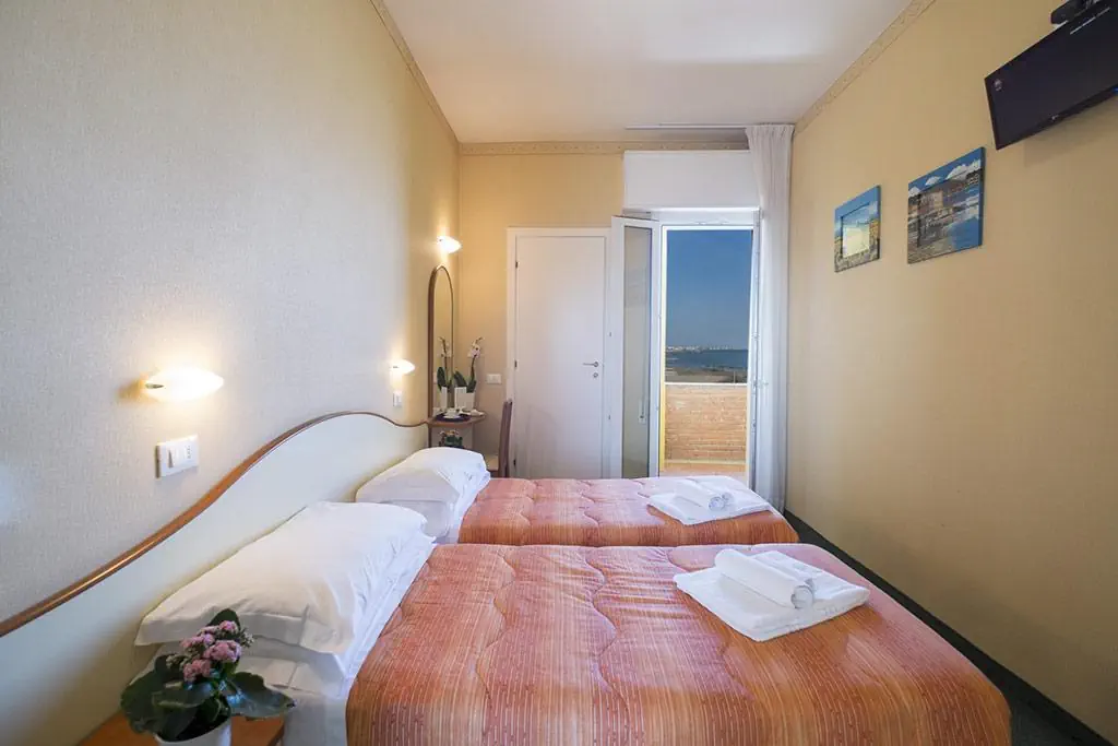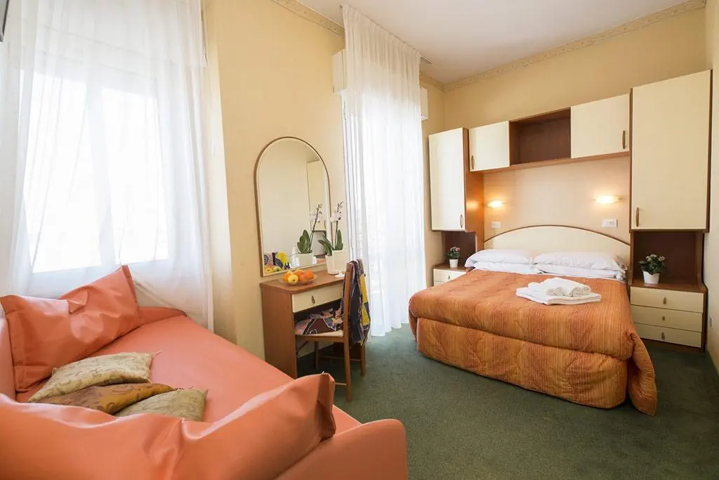 Pokoje wyposażone są w klimatyzację, centralne ogrzewanie i łazienkę. Balkon należy do standardowego wyposażenia większości pokoi. Urzekającą atmosferę wielu kwater podkreśla widok na morze. Pomieszczenia mieszkalne i sypialne wyposażone są w łóżko podwójne bądź łóżko typu queen size. Istnieje możliwość dostawki. Ponadto skorzystać można z sejfu i biurka. Elementami podwyższającymi komfort pobytu są telefon, telewizor i Wi-Fi (bezpłatnie). Dostępne są pokoje przystosowane dla osób poruszających się na wózkach inwalidzkich. Łazienki wyposażone są w prysznic, wannę i bidet. W łazience goście znajdą suszarkę do włosów. Ekskluzywnie dla naszych podróżnych przygotowaliśmy w łazienkach artykuły kosmetyczne i komplet ręczników. Obiekt oferuje pokoje rodzinne i pokoje dla niepalących.Oferta sportowo-rozrywkowa - Crosal (Rimini)