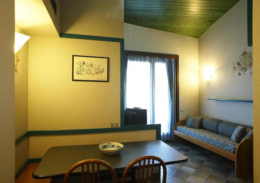 mono 2 - 18 m - pokój dzienny z aneksem kuchennym i rozkładaną kanapą dla 2 osób (możliwy typ szuflada") lub 2 pojedynczymi łóżkami zwykle w formie kanapy dla 1 osoby, łazienka, balkon. mono 3/4 - 30 m / mono 3, 32 m / mono 4 - mały pokój dzienny z aneksem kuchennym i kanapą dla 1 osoby lub rozkładaną kanapą (możliwy typ szuflada") dla 2 osób, otwarte poddasze (antresola) 2 piętro z łóżkiem małżeńskim, łazienka, rzadko balkon bilo 4 - 35 m - 1 sypialnia z łóżkiem małżeńskim, pokój dzienny z aneksem kuchennym i rozkładaną kanapą (możliwy typ szuflada") dla 2 osób, łazienka, balkon bilo 5/6 - 38 m - 1 sypialnia z łóżkiem małżeńskim, pokój dzienny z aneksem kuchennym, łóżkiem piętrowym w szafie i kanapą dla 1 osoby lub rozkładaną kanapą (możliwy typ szuflada") dla 2 osób, łazienka, balkon Dodatkowe wyposażenie: TV, telefon, suszarka do włosów (na zapytanie), kuchenka mikrofalowa (na zapytanie)Wyżywienie - Mirelladue
