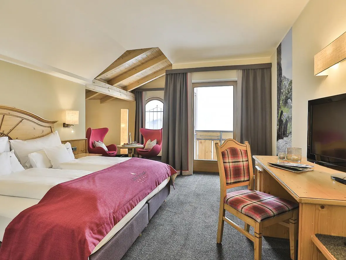 Superior 2/3 - 30 m - pokój z łóżkiem małżeńskim i ewentualnie rozkładaną kanapą dla 1 osoby, łazienka, oddzielne WC, mniejszy balkon z widokiem na góry Suite Panoramica 2/3/4 - 41 m - pokój z łożkiem małżeńskim i ew. rozkładaną kanapą dla 1 lub 2 osób, łazienka Dodatkowe wyposażenie: TV sat., suszarka do włosów, sejf, lodówka na napoje (tylko w pokojach typu Suite Panoramica), wi-fi, szlafroki do wellness (na zapytanie)Wyżywienie - Larchenhof