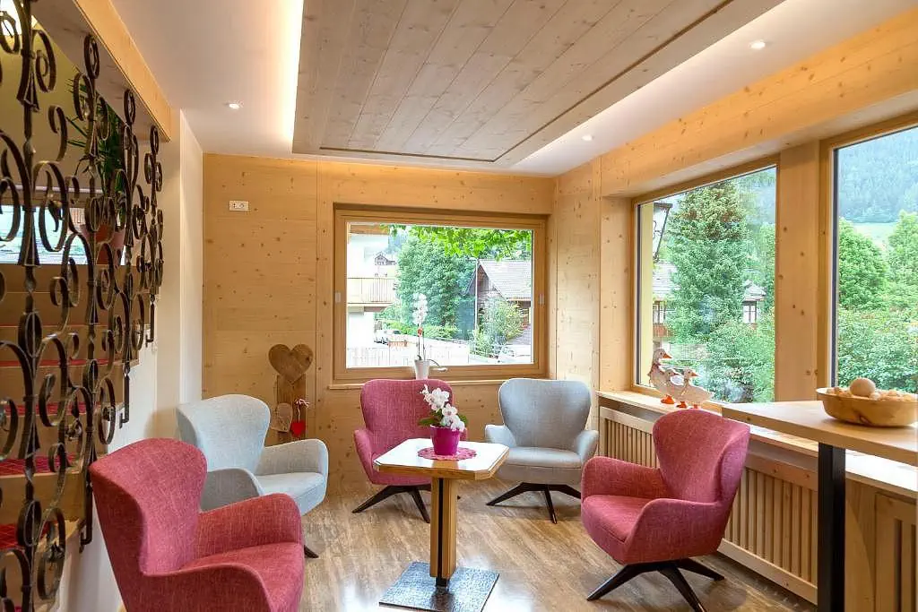 Comfort 2 - 26 m - pokój z łóżkiem małżęńskim lub 2 pojedyńczymi łóżami, łazienka, balkon, niektóre pokoje znajdują sie na poddaszu Superior 2/3 - 32 m - pokój z łóżkiem małżęńskim lub 2 pojedyńczymi łóżkami i ewentualnie 1 dodatkowym pojedyńczym łóżkiem lub kanapą dla 1 osoby, łazienka, balkon Junior Suite 2/3/4 - 42 m - pokój z łóżkiem małżeńskim, pokój z rozkładaną kanapą dla 2 osób, łazienka, balkon Dodatkowe wyposażenie: TV sat., suszarka do włosów, sejf, połączenie internetowe wi-fi, lodówka na napoje, szlafroki do wellness (płatne)Wyżywienie - Dolomiten