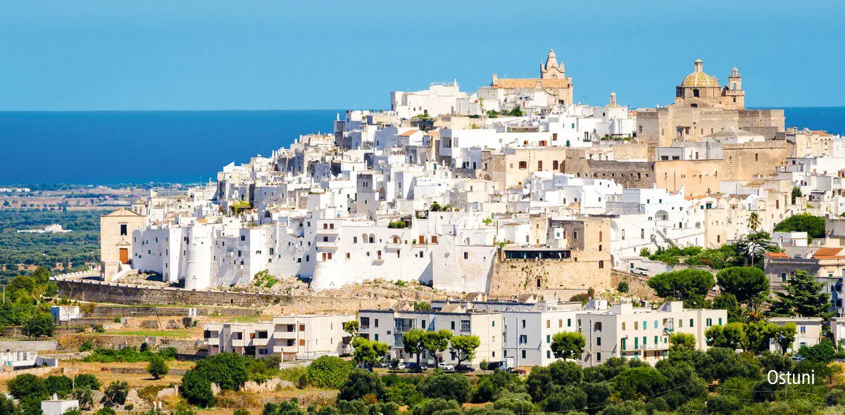 Mapa wycieczki objazdowej Bari • Polignano a Mare • Otranto • Lecce • Groty Castellana • Locorotondo • Ostuni • Alberobello • Matera Długość trasy we Włoszech: ok. 1100 kmInformacje o wycieczce - Turkusowa Granica