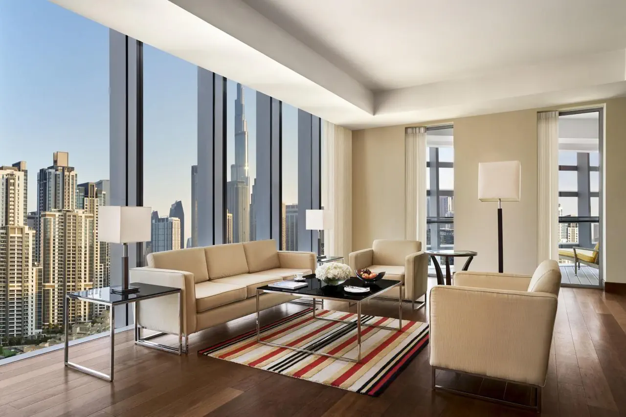 Superior Room (CityView) - sypialnia z częścią wypoczynku dziennego, łazienka, widok na miasto, powierzchnia - 52 m kw. Superior Room (PoolView) - sypialnia z częścią wypoczynku dziennego, lazienka, widok na basen, powierzchnia - 52 m kw. Deluxe Room (CityView) - sypialnia z częścią wypoczynku dziennego, łazienka, pokoje na wyższych piętrach, widok na miasto, powierzchnia - 52 m kw. Deluxe Room (PoolView) - sypialnia z częścią wypoczynku dziennego, lazienka, widok na basen, pokoje na wyższych piętrach, powierzchnia - 52 m kw. Luxury Room (Burj Khalifa View) - sypialnia z częścią wypoczynku dziennego, łazienka, widok na Burj Khalifa, powierzchnia - 52 m kw. Deluxe Suite - sypialnia z pokojem dziennym, część jadalna, lazienka, balkon lub taras (widok na miasto) powierzchnia - ok. 133 m kw. Na wyposażeniu: klimatyzacja, TV sat, telefon, sejf, minibar, ekspres do kawy, łącza Wi-Fi, biurko, panoramiczne okna.Wyżywienie - Anantara Downtown Dubai (ex The Oberoi)