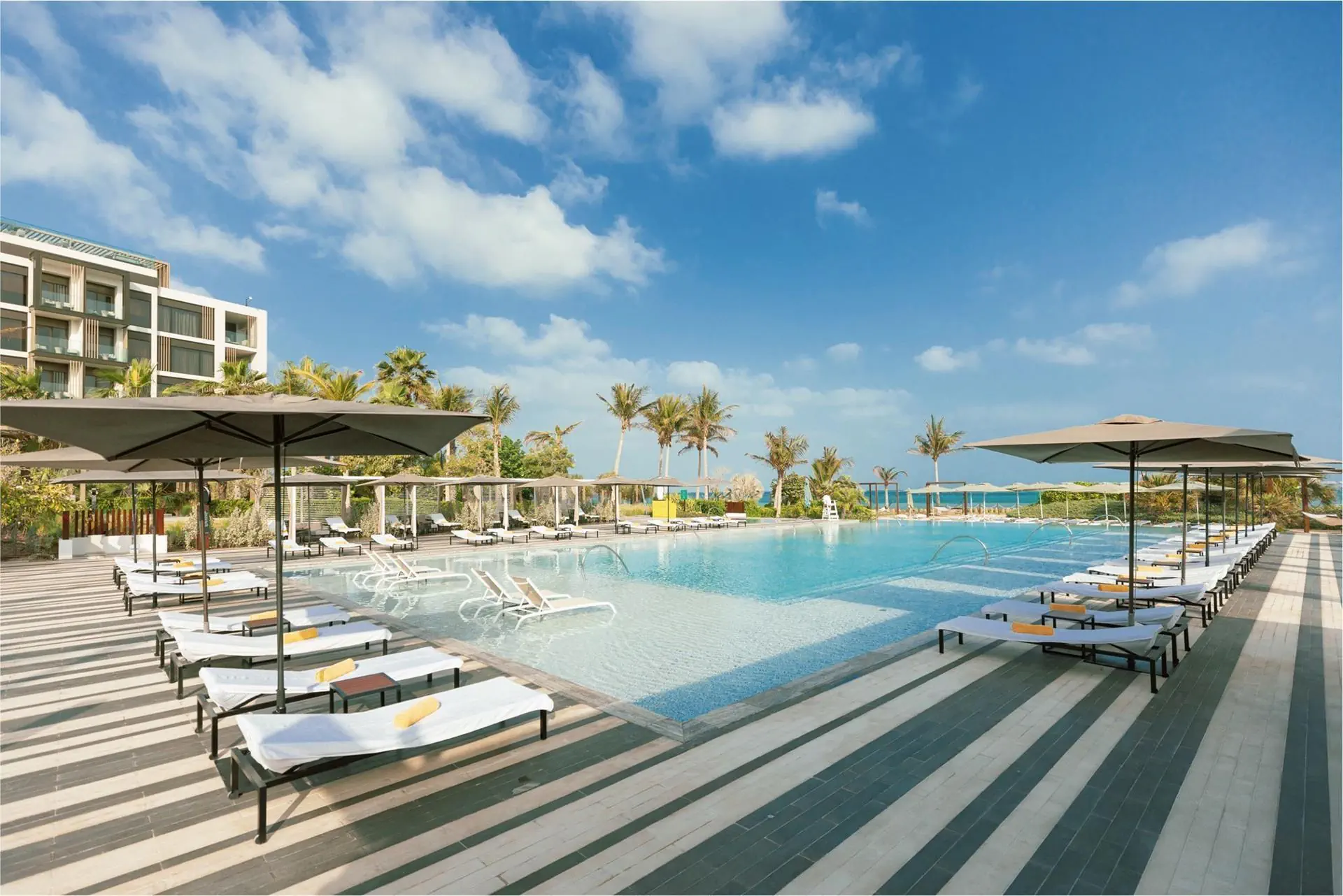 ekskluzywny hotel, który posiada 251 pokoi, do dyspozycji gości; lobby z recepcją, 4 restauracje (kuchnia włoska, śródziemnomorska, japońska), 2 bary, centrum SPA (płatne), sala bankietowa, basen zewnętrzny, leżaki, parasole, Depozyt hotelowy; 500 AED/noc/pokój.