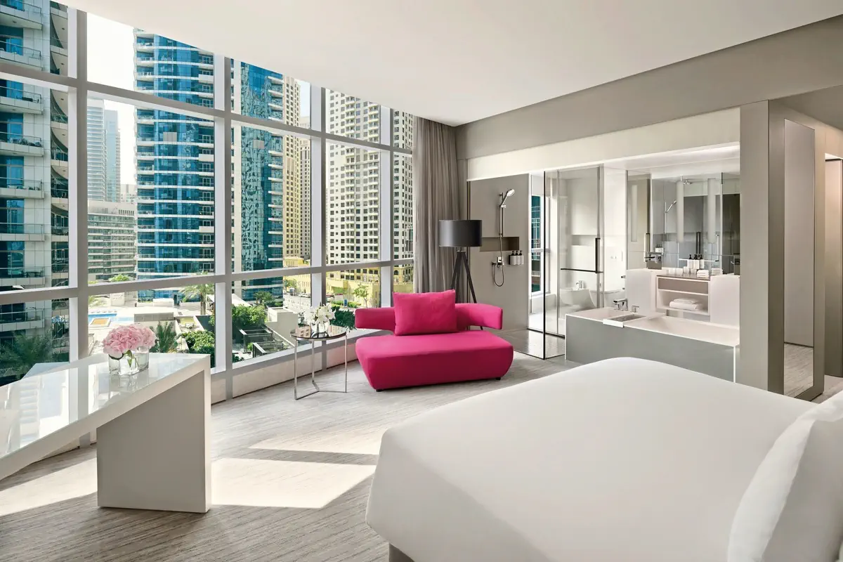 41-45 m², podwójny, piętro, top, widok na port, łóżko podwójne (king size), wanna, kabina prysznicowa bez brodzika, WC, szlafrok kąpielowy, klimatyzacja, minibar płatne, sejf, deska do prasowania, żelazko, TV, Wi-Fi, czajnik, kawa/herbata, balkonWyżywienie - Intercontinental Dubai Marina