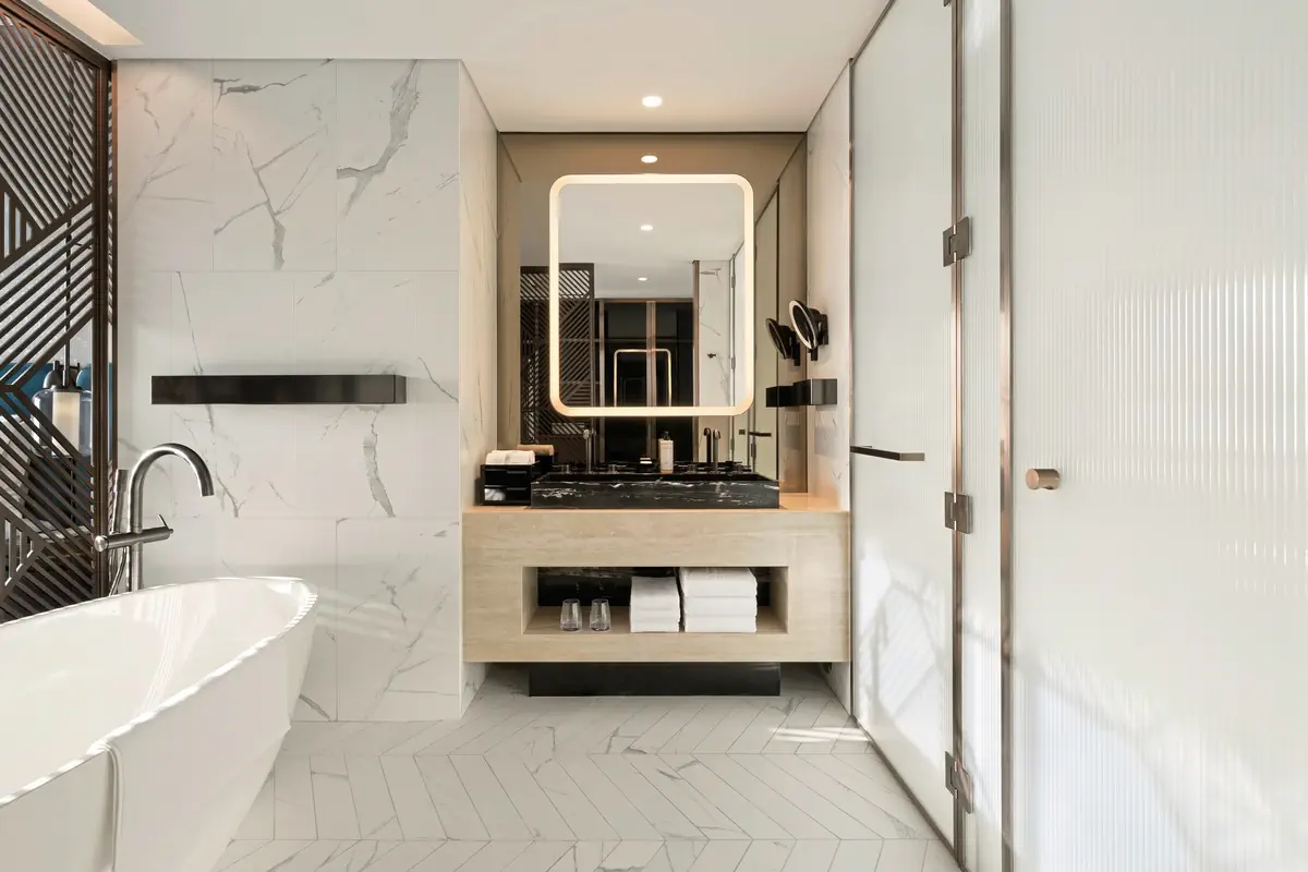 41-45 m², studio, kącik wypoczynkowy, prysznic, wanna, WC, szlafrok kąpielowy, kapcie kapielowe, suszarka do włosów, klimatyzacja, minibar, napoje bezalkoholowe, sejf, deska do prasowania, żelazko, TV, Wi-Fi, ekspres do kawyAtelier Suite - 1 Bedroom (WB1) - SO/ Uptown Dubai