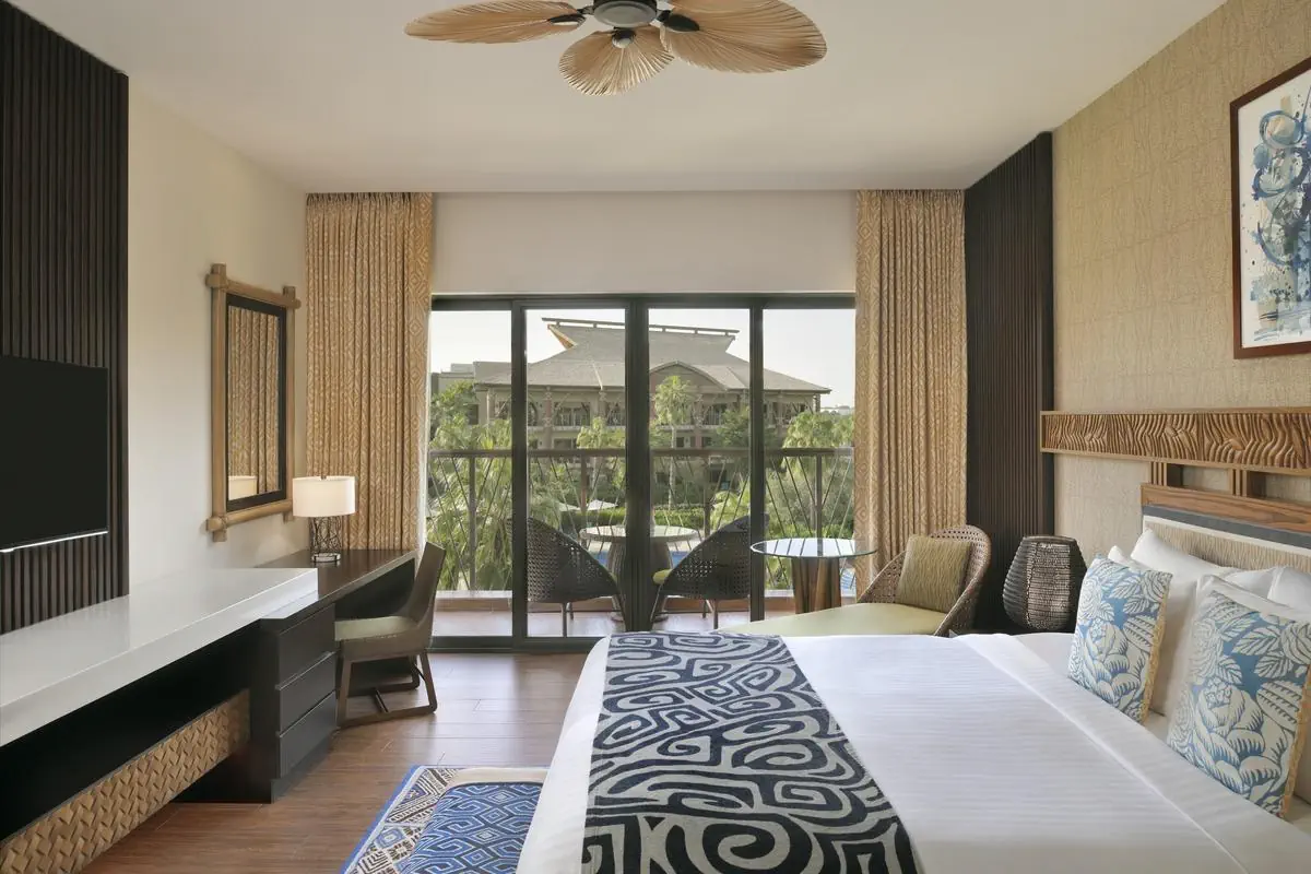 King Deluxe Room (Resort View)- sypialnia (łóżko king size), łazienka, balkon. Powierzchnia - ok. 37 m kw. Twin Deluxe Room (Resort View) - sypialnia (2 łóżka), łazienka, balkon. Powierzchnia - ok. 37 m kw. King Deluxe Room (Resort View, Activities Package) - pokój deluxe (king) z pakietem activities Twin Deluxe Room (Resort View, Activities Package) - pokój deluxe (twin) z pakietem activities Twin Deluxe Room (PoolView, Activities Package) - pokój deluxe (twin) z pakietem activities widok na basen FamilyRoom - pokój rodzinny; 2 sypialnie, 2 łazienki, balkon. Powierzchnia - ok. 74 m kw. FamilyRoom (Activities Package) - pokój rodzinny z pakietem activities. FamilySuite - pokój rodzinny o powierzchni ok. 114 m kw. (2 sypialnie, salon, 2 łazienki, 2 balkony). FamilySuite (Activities Package) - pokój rodzinny suite z pakietem activities. Wyposażenie: klimatyzacja, sejf, telefon, żelazko, minibar (płatny), TV sat, łącza internetowe (płatne), zestaw do przygotowania kawy/herbaty, szlafroki/kapcie. Activities Package: Przy minimum 3 nocach: nieograniczony wstęp do wszystkich parków rozrywki, przejazdy na plażę Sheraton Jumeirah (w obie strony), autobus wahadłowy do Mall of the Emirates i Dubai Mall.Wyżywienie - Lapita Dubai Parks & Resorts
